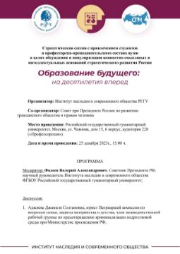 Стратегическая сессия «Образование будущего: на десятилетия вперед» для экспертов, преподавателей российских школ и вузов.